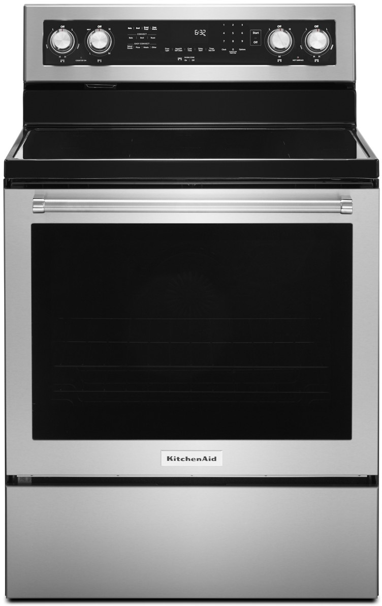 This versatile electric freestanding range produces flawless cooking results with Even-Heat™ True Convection. The unique bow-tie design and convection fan ensure the inside of the entire oven is heated to, and stays at, the perfect temperature. The cooktop has 5 elements for a variety of cooking methods. Stainless Steel with PrintShield™ Finish resists smudges and fingerprints.Read More